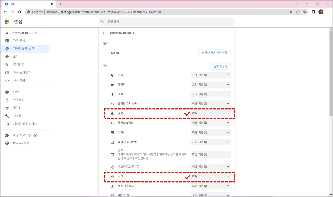 02. 이동된 페이지에서 아래 2가지 허용하기