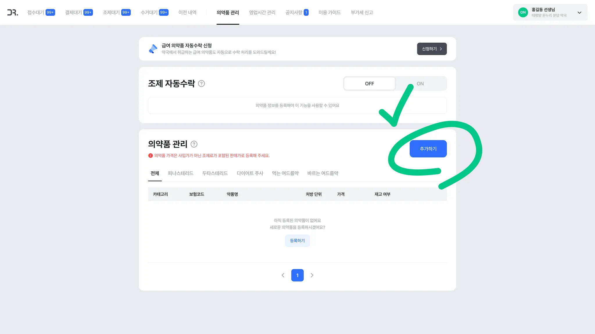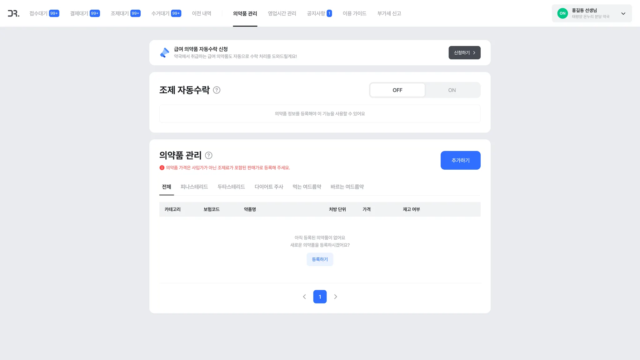 Step 02. 비급여 의약품 자동수락(자동결제) 등록하기