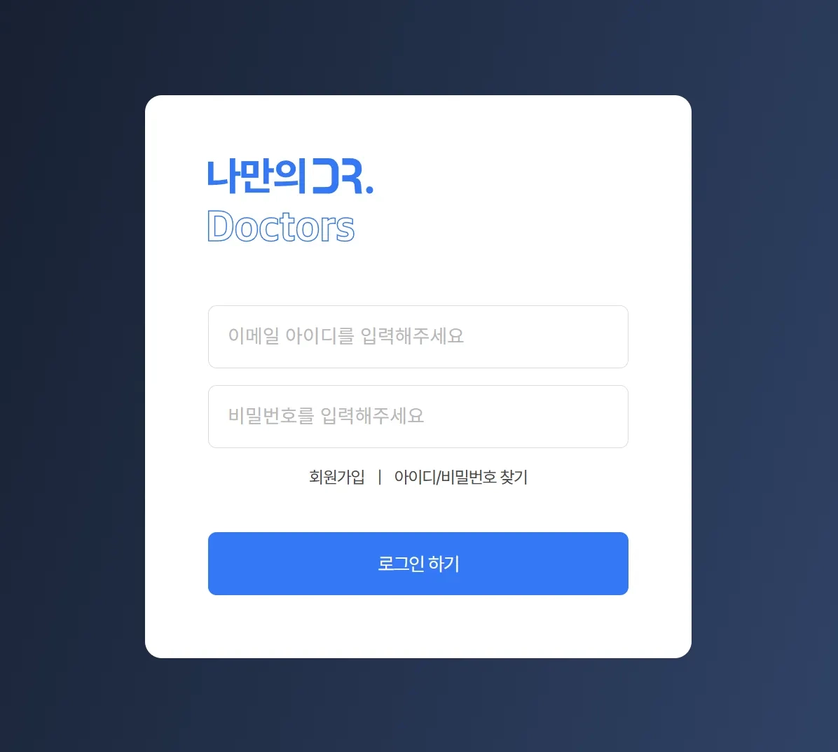 이메일 안내 또는 위 링크를 통해 ‘의사 전용 어드민’에 접속해 주세요.