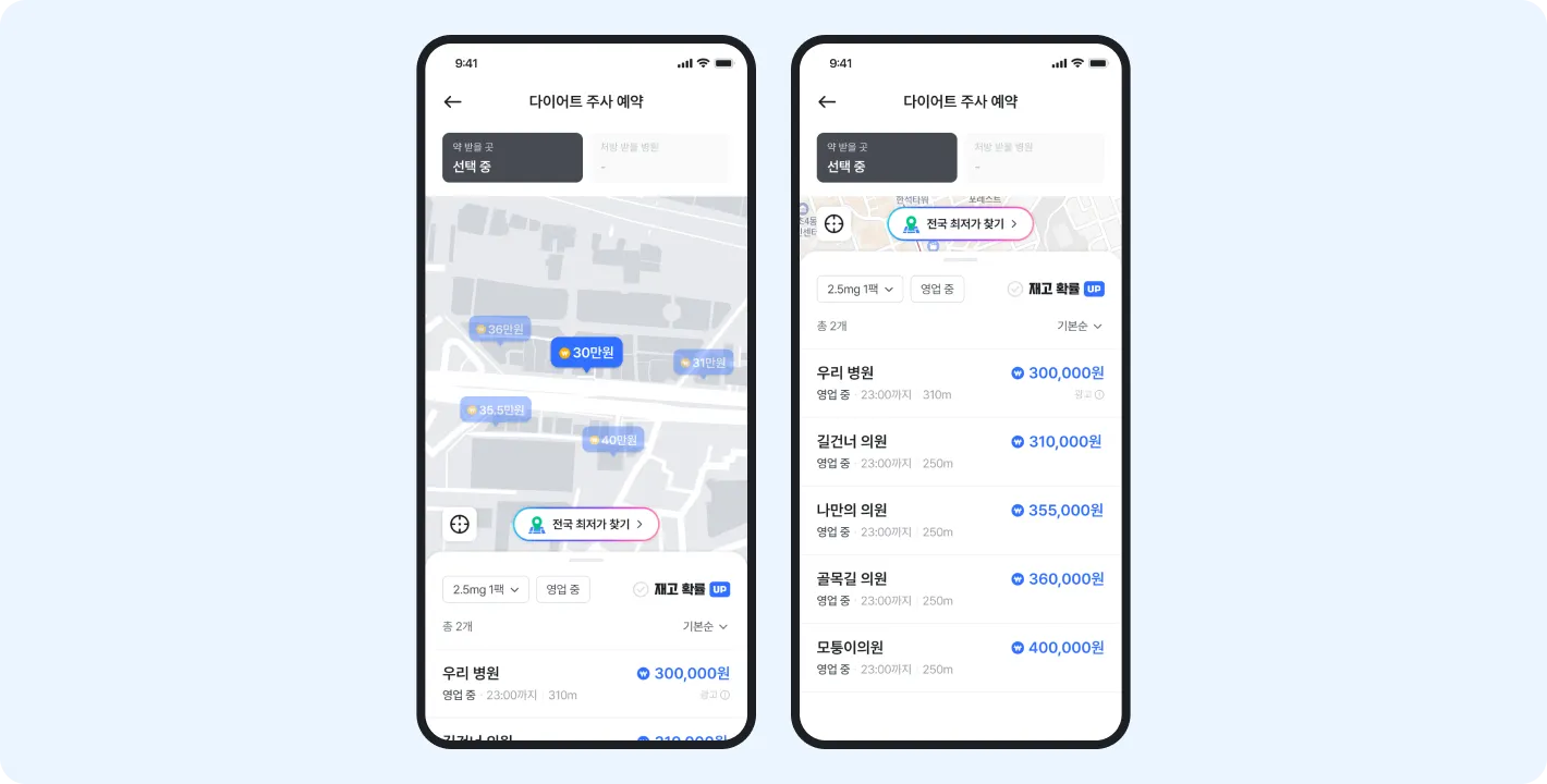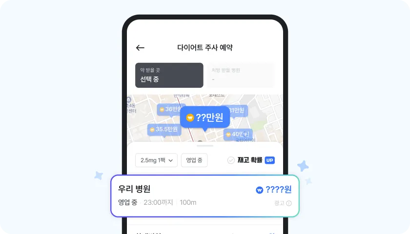 전국 다이어트 환자에게 우리 병원을 노출하고 진료 예약을 받을 수 있어요.