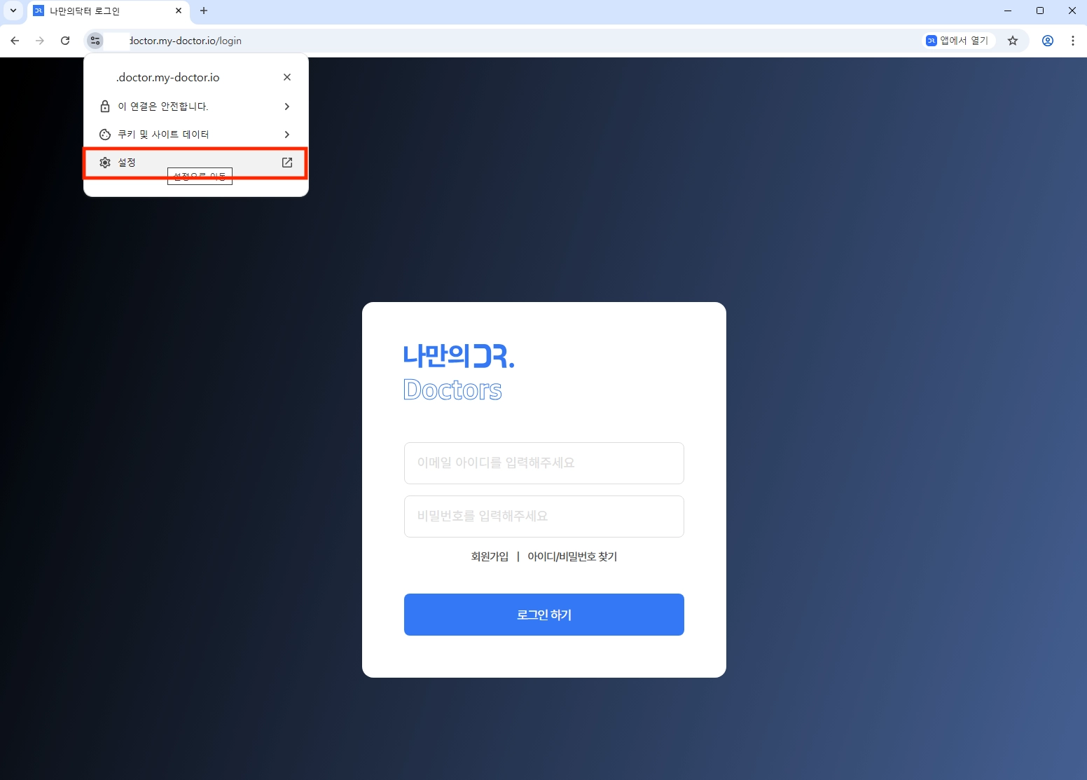 나만의닥터 의사 어드민 사이트에 접속해주세요.