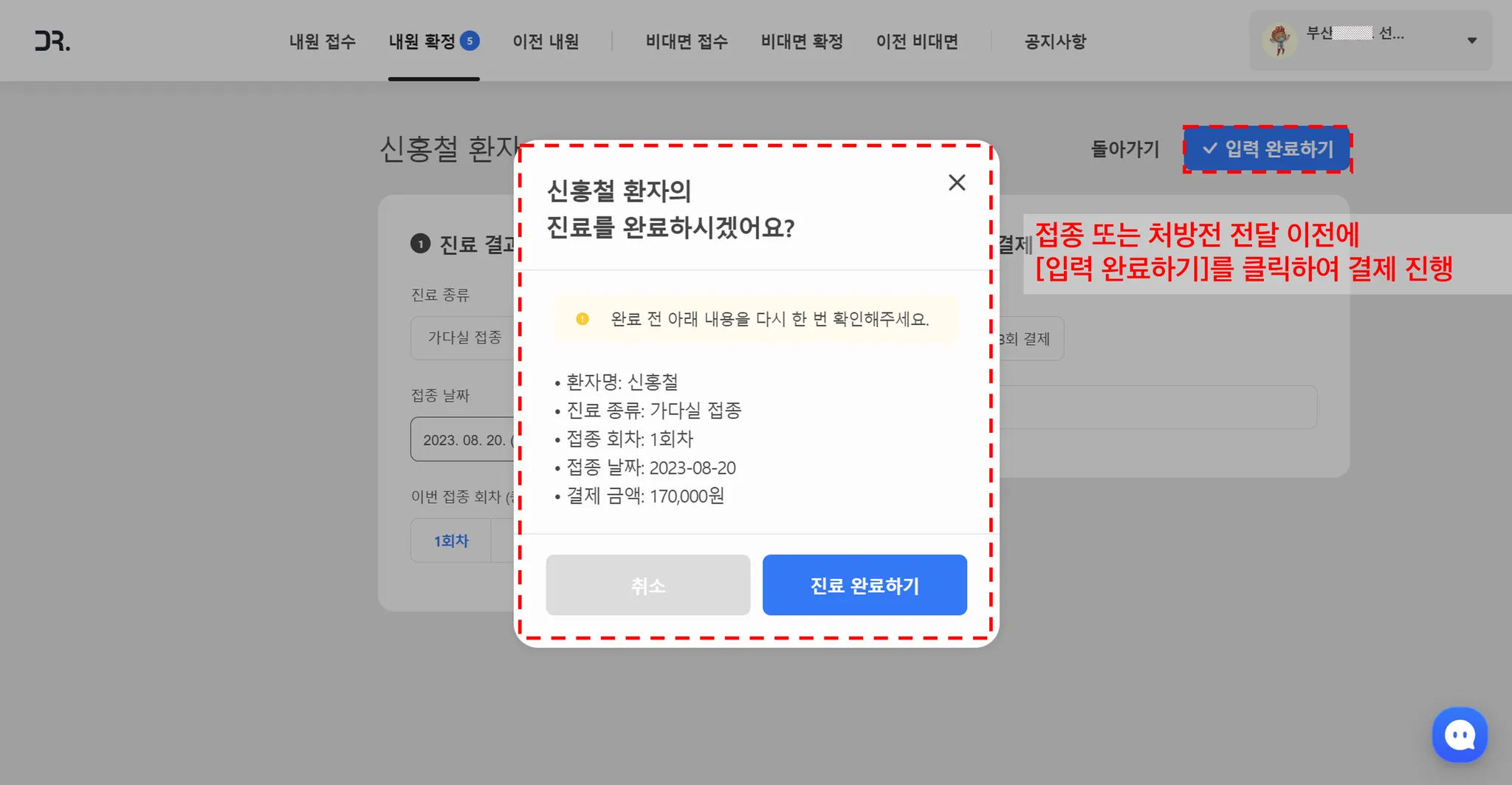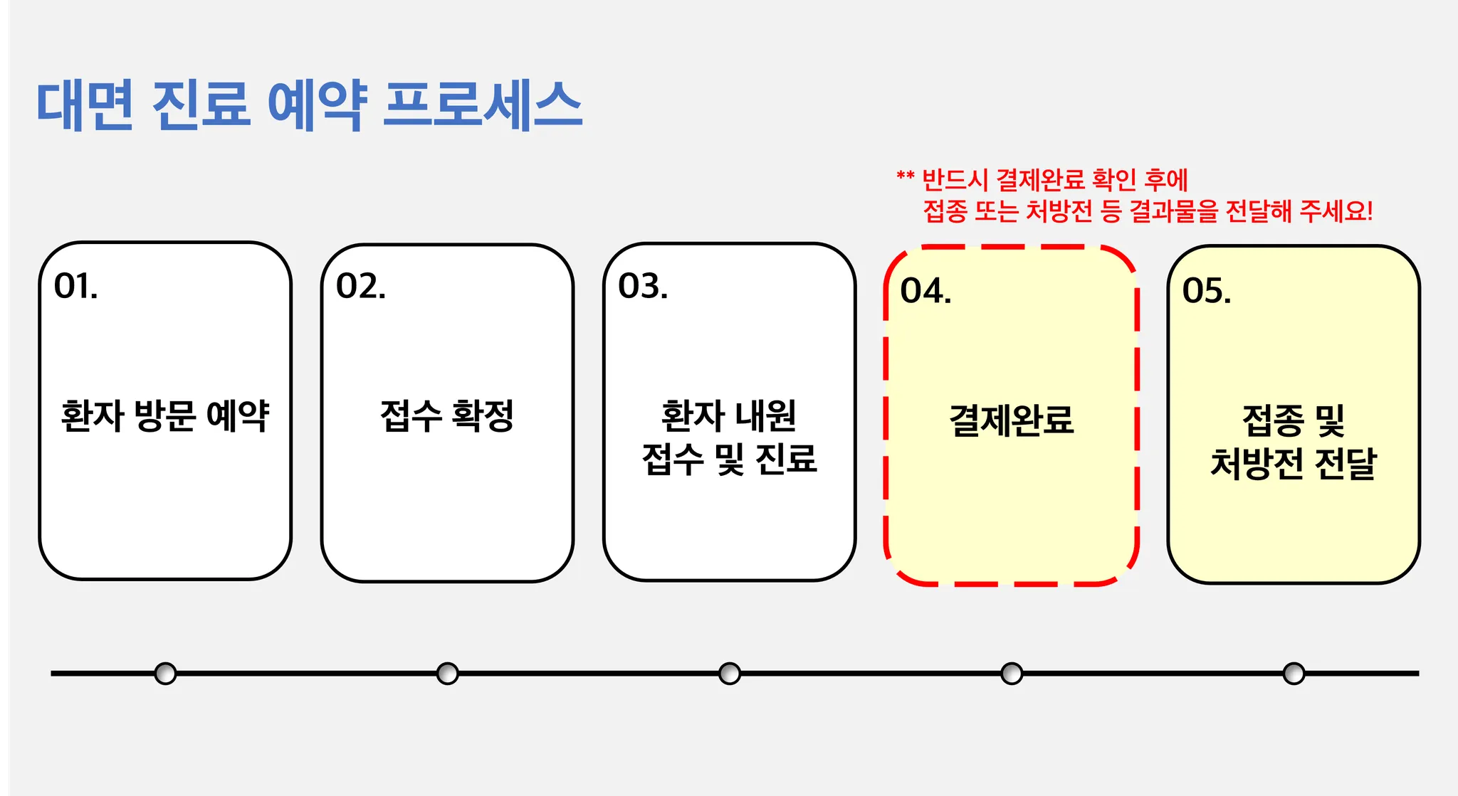 처방전을 전달하거나, 실제로 접종이 이루어지기 전에 ‘반드시 결제’를 완료해 주세요