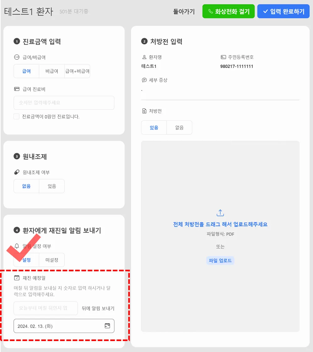하고, 재진 예정일을 입력해 주세요!